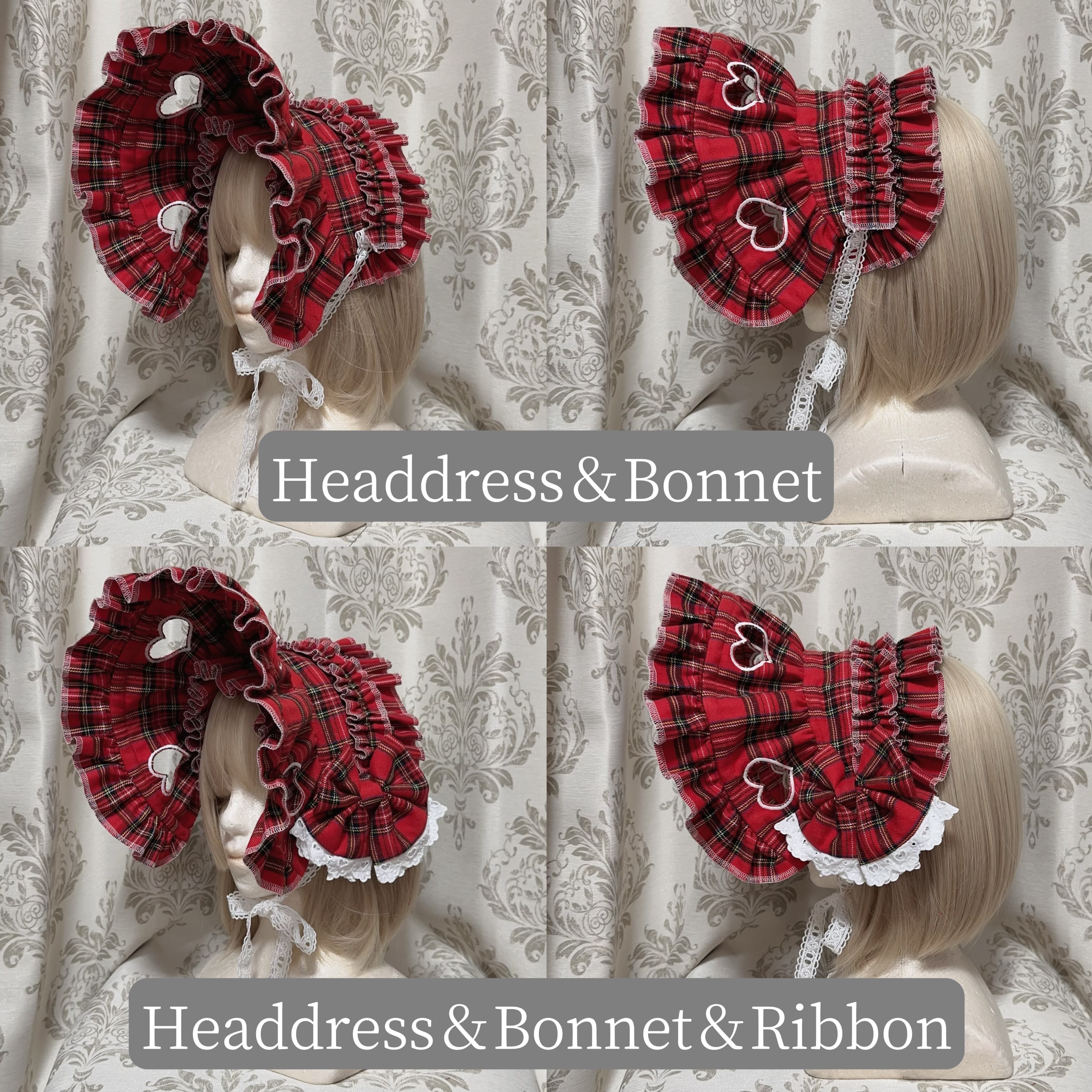 私は可愛いボンネット(Bonnet)/タータンチェック✖️黒(black lace)