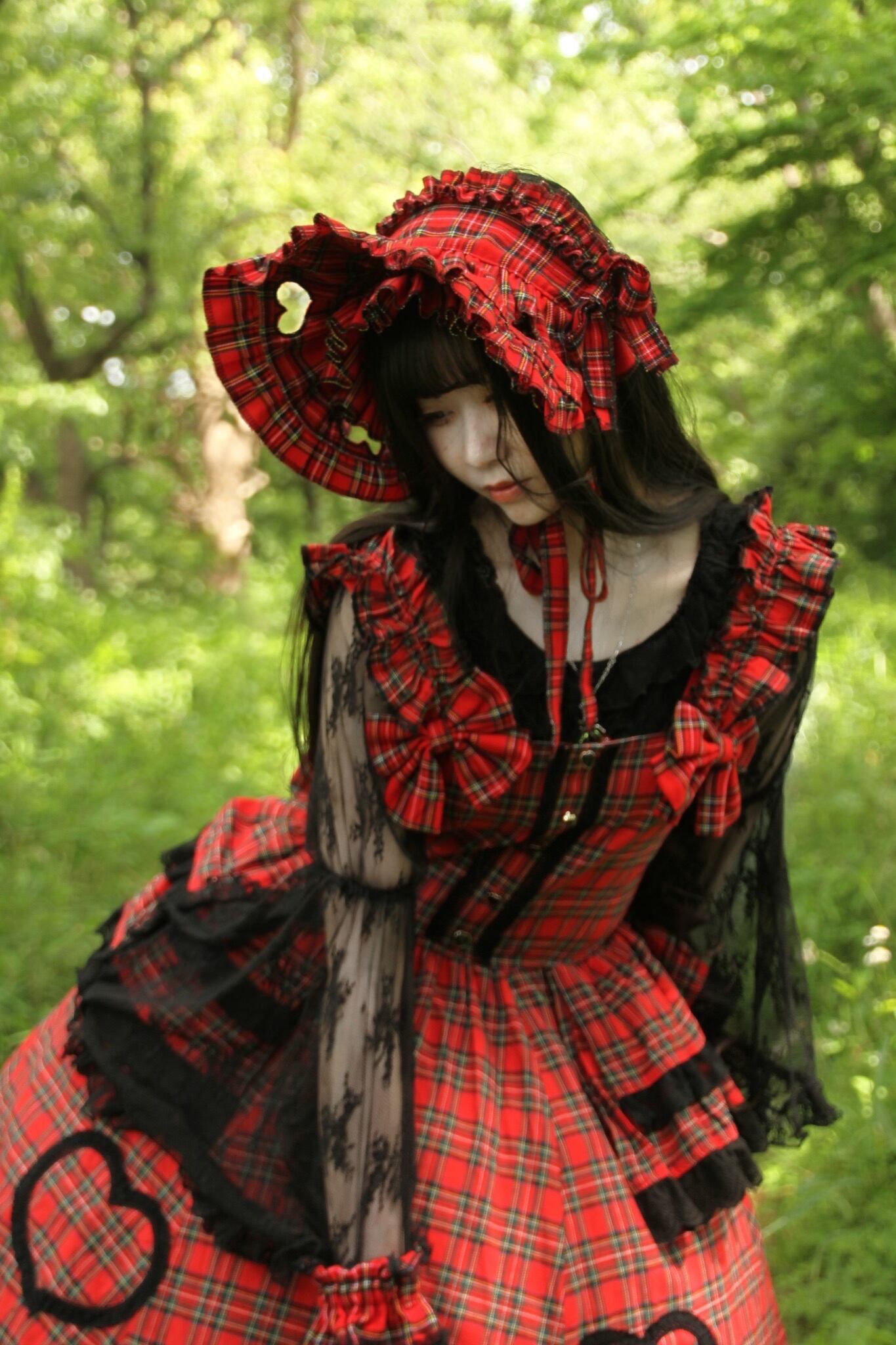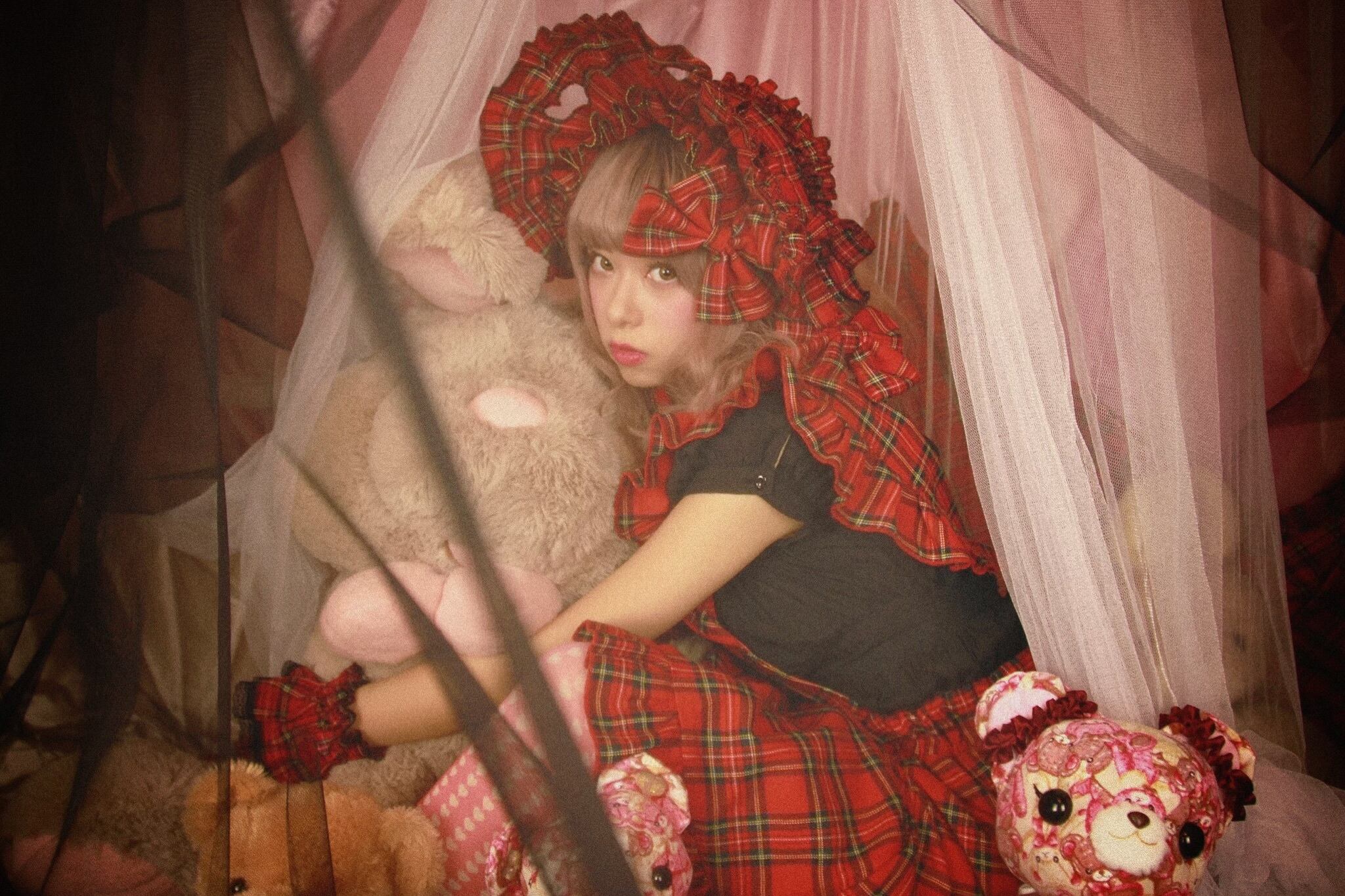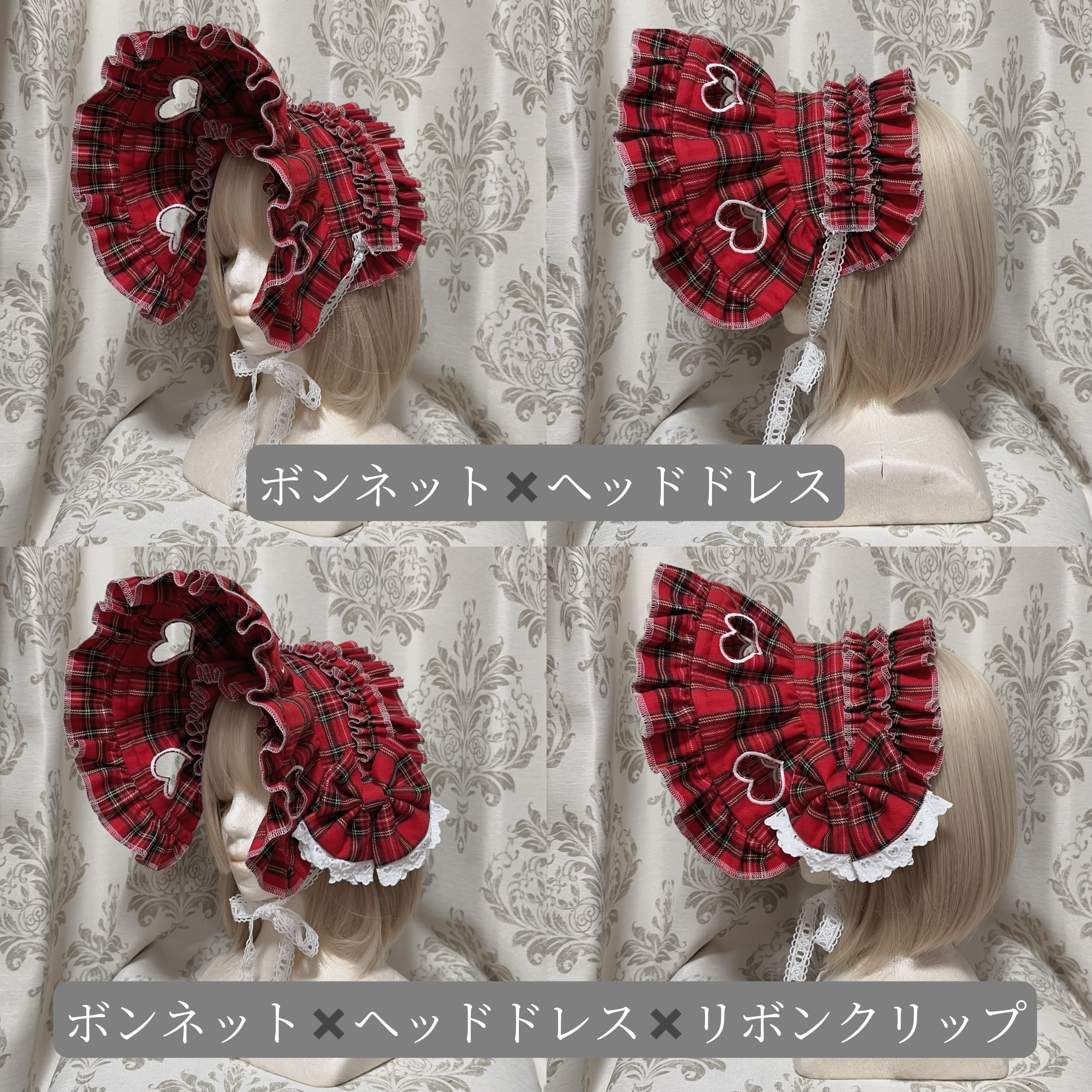 私は可愛いボンネット/タータンチェック✖️白