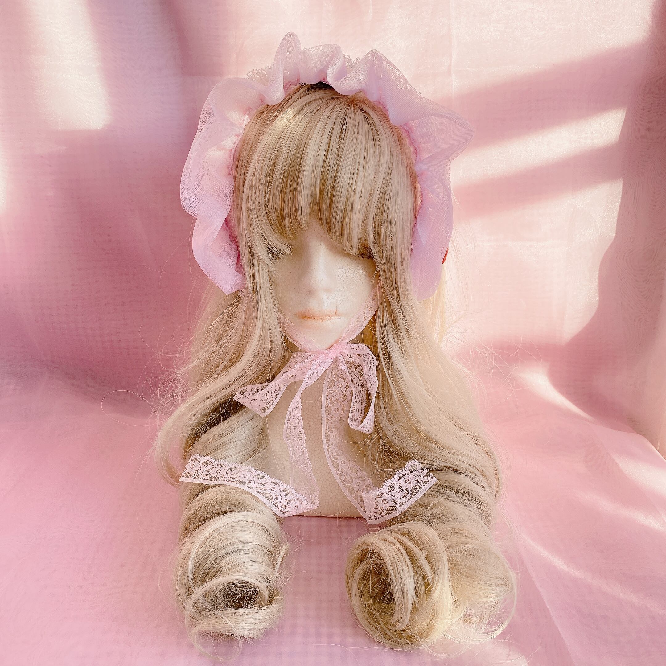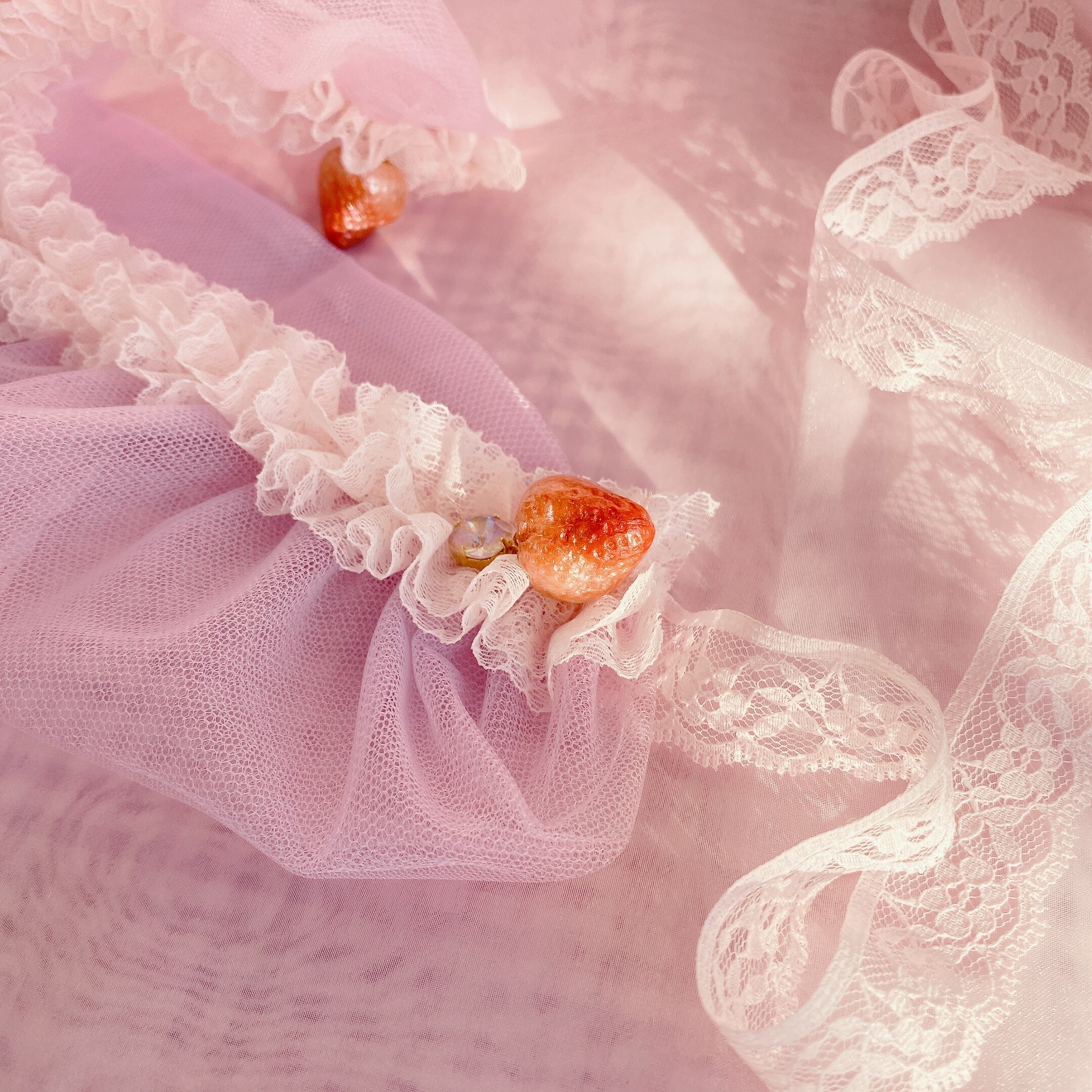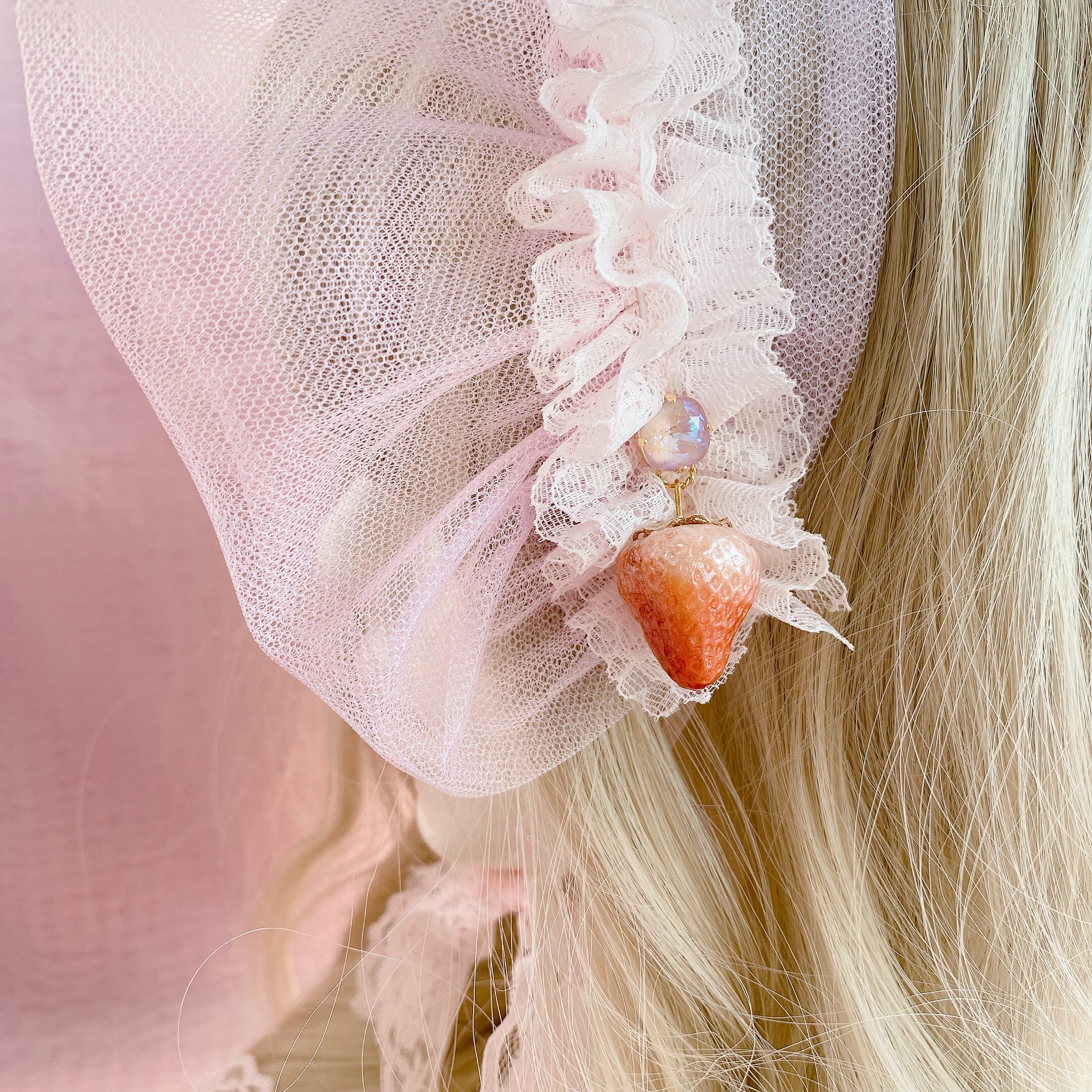 シースルーハーフボンネット(苺/ピンク)