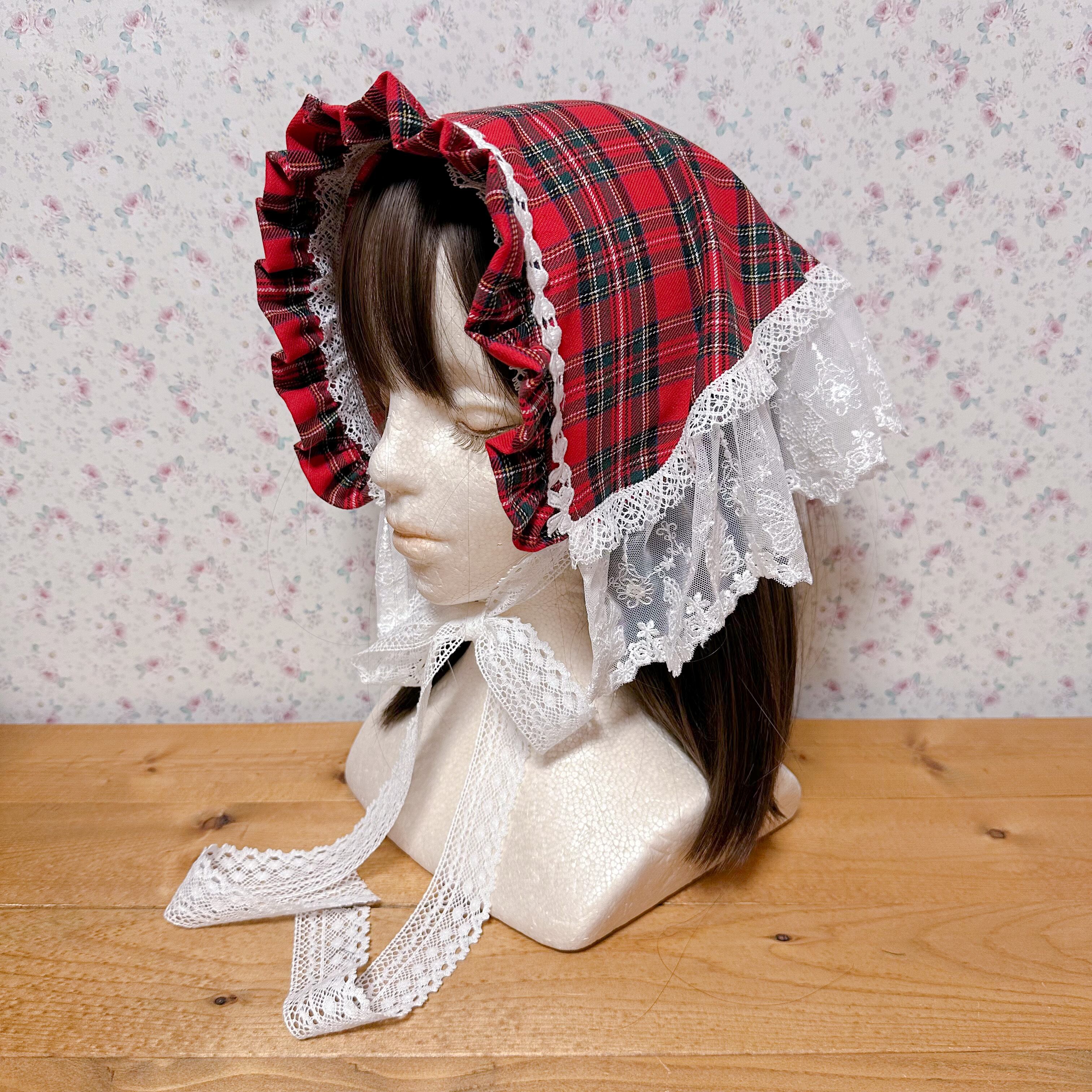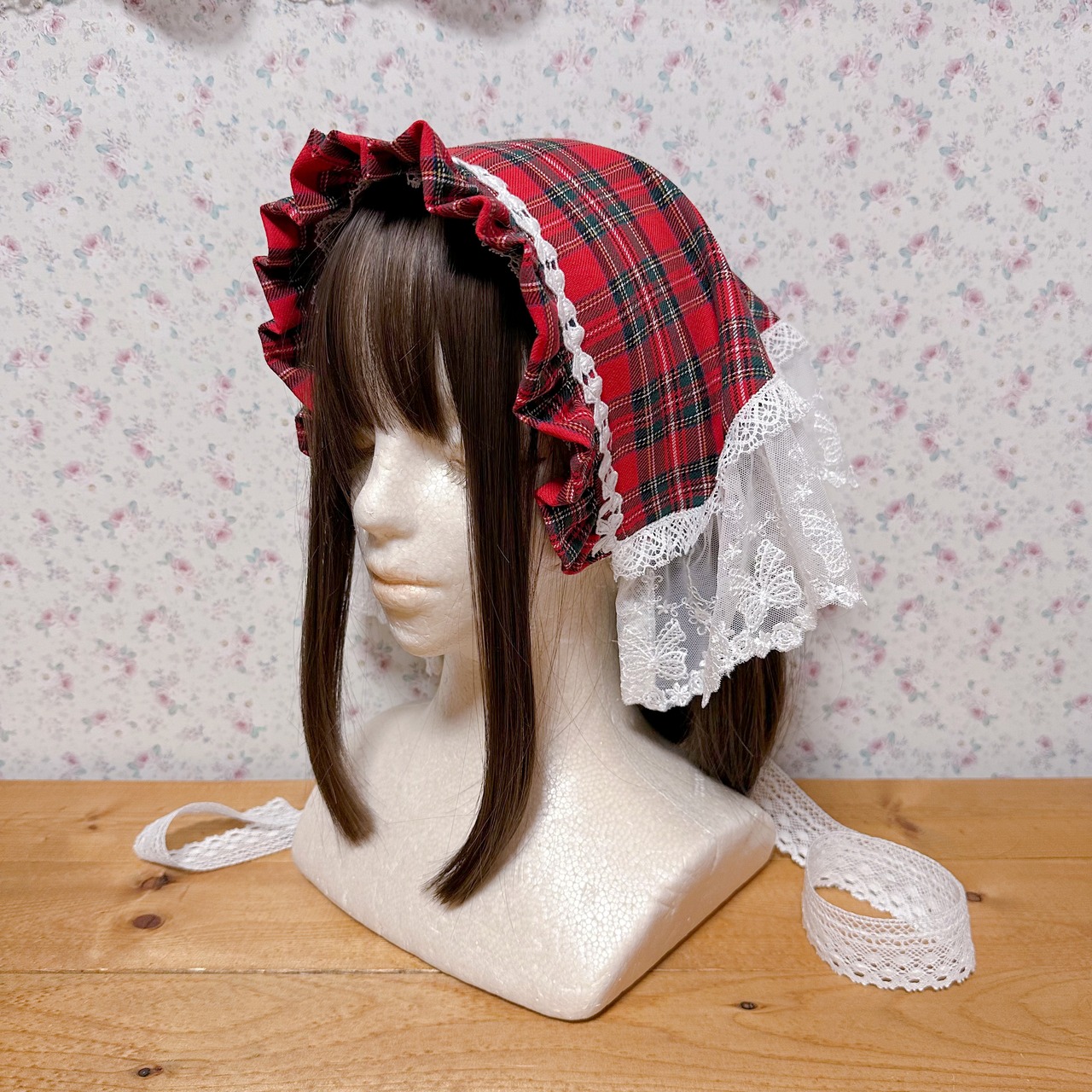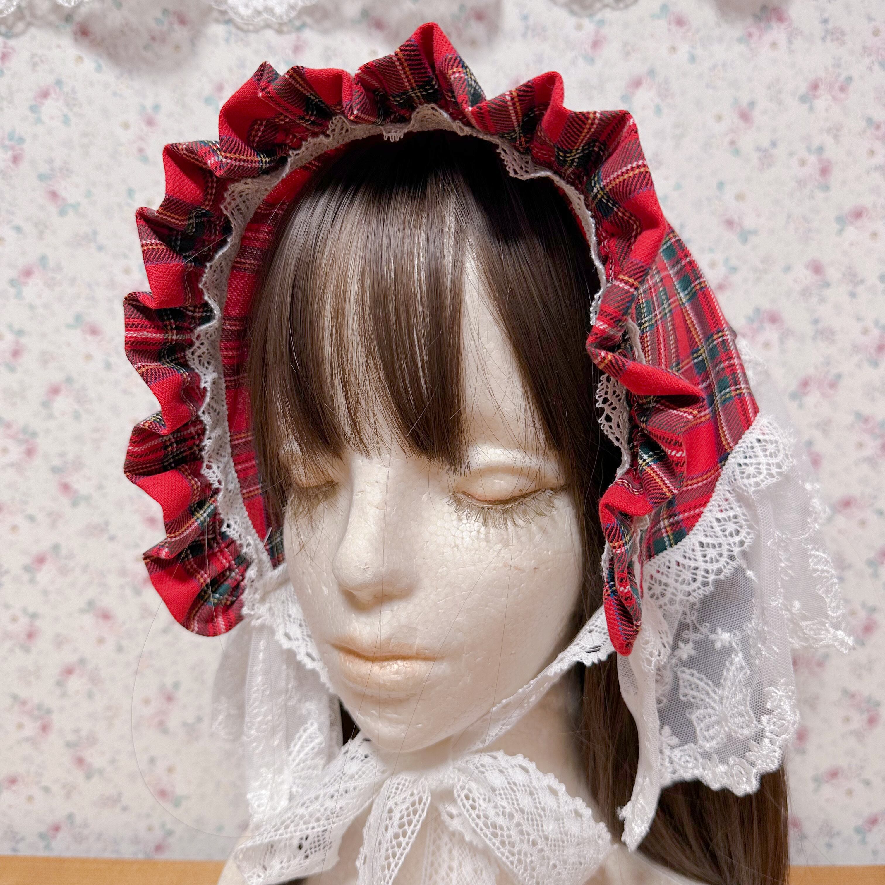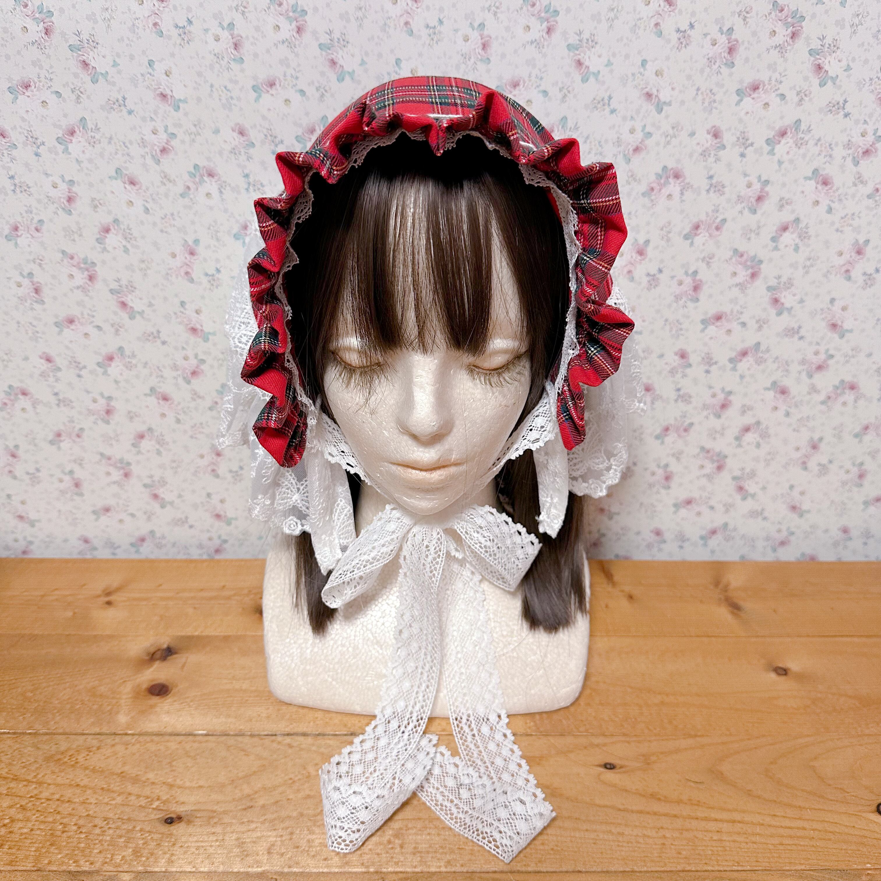 タータンチェックにリボンのレースが可愛らしい商品です。